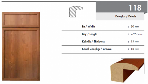 En : 30 mm Kalınlık: 25 mm Boy: 2790 mm Kanal Genişliği: 18 mm |